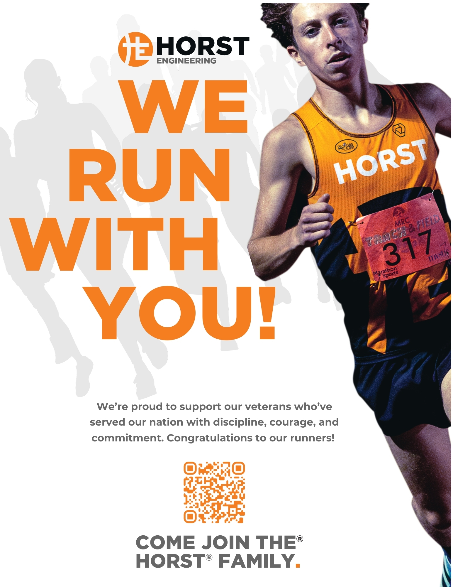 It’s incredible that this institution has brought together the community for so many years. In addition to sponsoring Veterans’ Row for the eighth time, we have many connections to the race. Our president, Scott Livingston, has completed the race 35 times, including 30 years in a row, and in 2024, he was the first finisher in the 50-54 age group. His entire family competes in the event, including spouse Debbie who has 25 straight finishes, daughter Dahlia, and son Shepard, who is pictured in this year’s program advertisement.